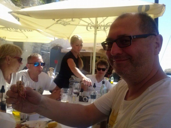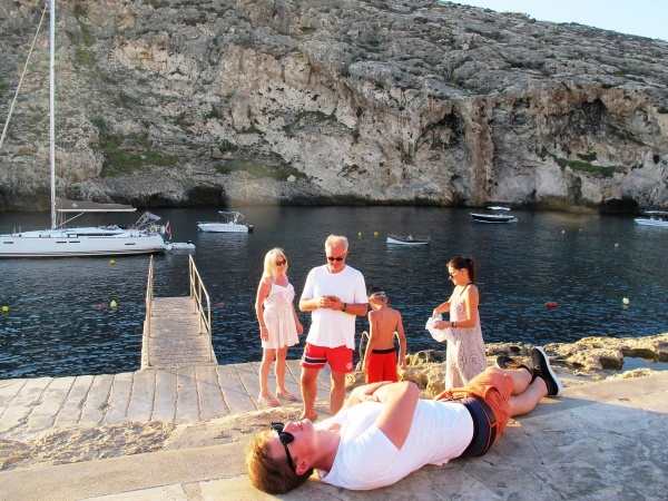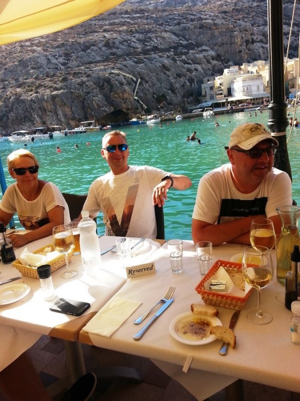 W wolnym czasie leniuchowaliśmy, był plażing, były i kajaki i rowery wodne ze zjeżdżalnią, skakaliśmy do wody ze skoczni- włącznie z najmłodszymi śmiałkami, były i wycieczki na Comino, Maltę i nocne eskapady do Wiktorii, czerwony dywan dla gwiazd, zachody słońca i nocne Polaków rozmowy. Angelo nas oczywiście nie zaskoczył_ serwowane w super atmosferze- jedzonko i lokalne wino -pierwsza klasa! I choć dla niektórych Gozo to nie była miłość od pierwszego wejrzenia to jednak finalnie to miejsce zachwyciło każdego! Ten luz na miejscu, serdeczność, cudowni mieszkańcy, fantastyczne owoce morza, wielokulturowa historia i wielki błękit. Takie wakacje to są wakacje! Nawet Iphone jak się zwiesił to na maxa ;) tj. na 25 lat 11 miesięcy 3 tygodnie 2 dni 3 godziny i 44 minuty J no i sami powiedzcie jak tam nie wracać?