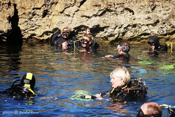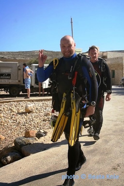 przed wyjazdem siała panikę, że pogoda owszem ma być, ale deszczowa, to ani deszcze, ani wiatry nie pokrzyżowały nam żadnych planów. Było słonecznie, bardzo upalnie i bezwietrznie. Temperatura wody 26 ºC, powietrza ok 30 ºC. Nurkowania były absolutnie fantastyczne i już większość z nas marzy o powrocie na Gozo.