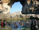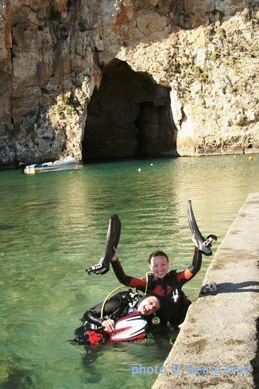 powoduje, że nurkowanie na wyspach maltańskich to nurkowanie dla każdego. Pod wodę zanurzaliśmy się zarówno w płytkich zatoczkach, jak i przy biegnących w morską otchłań ścianach. Eksplorowaliśmy jaskinie i groty oraz podziwialiśmy podwodne łuki, okna i tunele, które pod wodą wyglądają tak majestatycznie, że nie sposób ich zapomnieć. Niesamowitych doznań dostarczyło nam – jak zwykle zresztą- zanurzenie w słynnym Blue Hole oraz przepłynięcie pod tzw. Arch-em i tunel biegnący z The Inland Sea na otwarte morze.