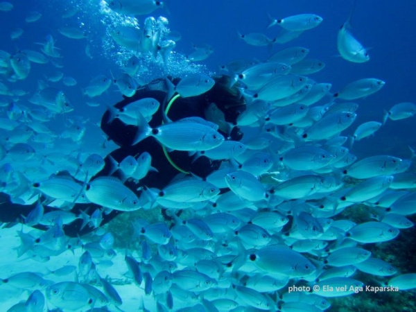 treściwe! Niesamowite formacje jaskiniowo- skalne, z wpadającymi, południowymi refleksami świetlnymi- bezcenne. Przy Malcie, z kolei nurkowaliśmy na fermie tuńczyków- widzieliśmy ich TYSIĄCE! Ilość tuńczyków i ich wielkość -od 80 do 500 kg/szt- była mega imponująca! Wir, który tworzyły powodował w dosłownym tego słowa znaczeniu „niesamowity zawrót głowy”.