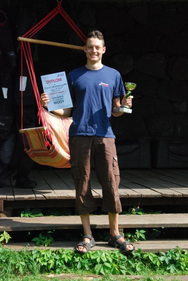 Jak co roku Baza Cn Adriatic współpracowała ze Stowarzyszeniem Freediving Poland- organizatorem zawodów. Oprócz udostępnienia tlenu czy ufundowaniu kilku nagród, w tym roku postanowiliśmy umożliwić start jednemu z zawodników, wspierając go finansowo. Akcja odbyła się zupełnie spontanicznie. Piotrek Andrzejczyk przyjechał na Suwalszczyznę jedynie potrenować nurkowanie głębokościowe. Ujął nas nie tylko swoim ogromnym talentem i ambicją, ale i skromnością, dowcipem i zwykłą ludzką życzliwością. Jako, że lubimy wspierać „Młode Talenty”, ułatwienie startu Piotrkowi było dla nas jedynie formalnością.