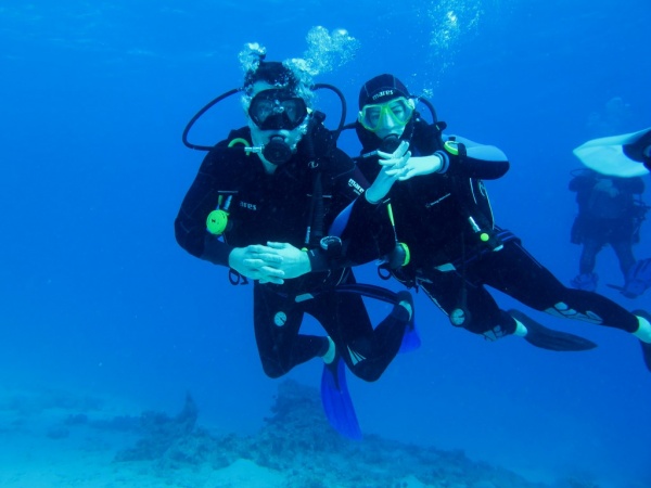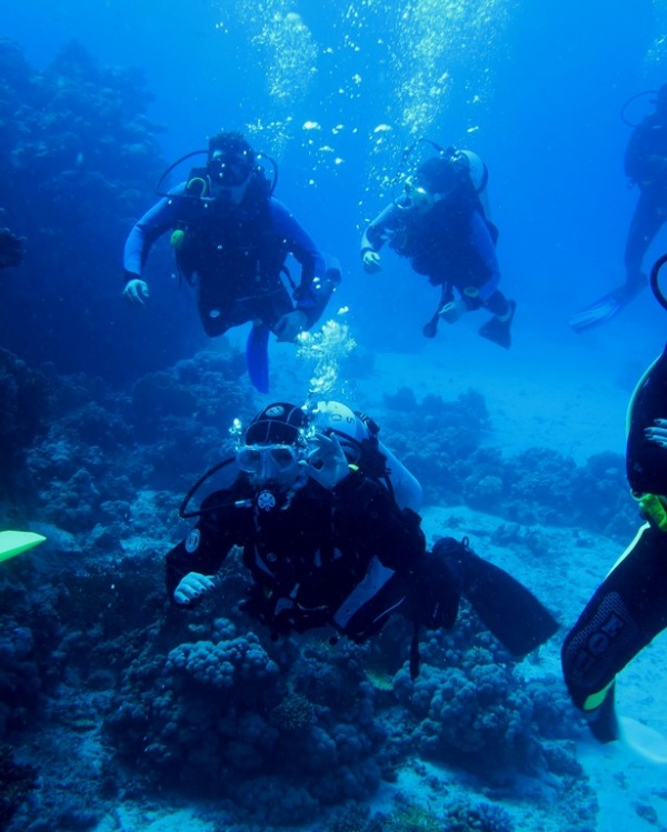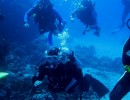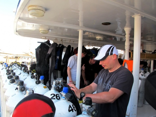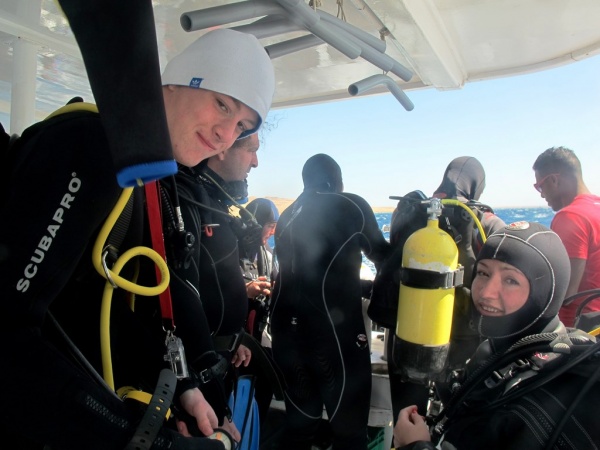 Na nurkowiskach po rewolucyjnych zmianach tłoczno nie było i choć rafa niestety jest w kilku miejscach częściowo martwa, to wciąż można znaleźć miejsca zapierające dech w piersiach. Podczas pięciu dni nurkowych odwiedziliśmy przeróżne nurkowiska. Zdecydowanie najpiękniejsze zanurzenia wykonaliśmy w dryfie na Small Giftun oraz na rafie Shaab Sabina, gdzie koralowce tworzą przepiękne, kolorowe ogrody. Momentami silnie wiejący wiatr spowodował gorszą przejrzystość wody, plan jednak wykonano bez zarzutu (zatwardzialcy nawet w 1 płetwie ;) ). Pod wodą podziwialiśmy niezliczone ilości