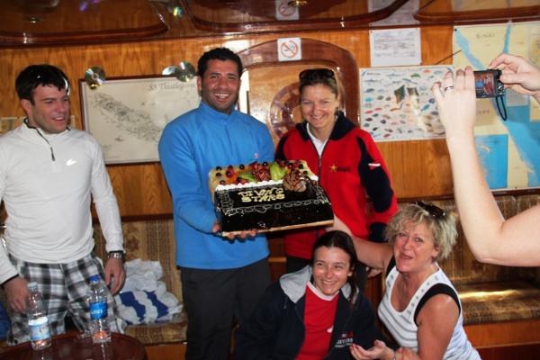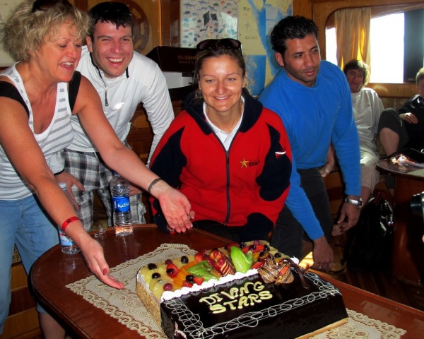 ogromnych muren, skrzydlice, płaszczki, żółwie, napoleony, fani makro podziwiać mogli ślimaki nagoskrzelne, a szczęśliwcy spotkali nawet koniki morskie. Klimat nurkowań był fantastyczny. Baza stawała na wysokości zadania pod każdym względem. W 5 dniu wspólnych nurków czekał na nas piękny i bardzo smaczny pożegnalny tort, a po ostatnim wynurzeniu zorganizowaliśmy na łodzi zimne, egipskie piwko.