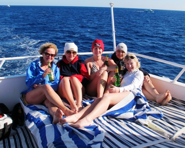 Nad wodą zachwycaliśmy się potrawami ze świeżych owoców morza, paliliśmy sishę i w doborowym towarzystwie w pełni się relaksowaliśmy. W przeddzień wylotu, kiedy nie mogliśmy już nurkować oddawaliśmy się rozrywkom sportowym oraz rozkoszom plażowania- przy opcji all inclusive ;) Zażyłość z obsługującą nas – świetną bazą nurkową zaowocowała nawet obecnością delegacji naszej Ekipy na egipskim weselu i zacieśnieniu międzynarodowych relacji.